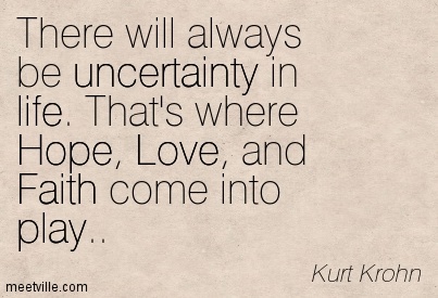 - As mentioned above, a certain degree of uncertainty keeps me on my toes. I hate to admit this, but I am the kind prone to complacency when something is guaranteed, and my experience with complacency has never been favorable. In case you think your’s is likely to be otherwise, good luck!